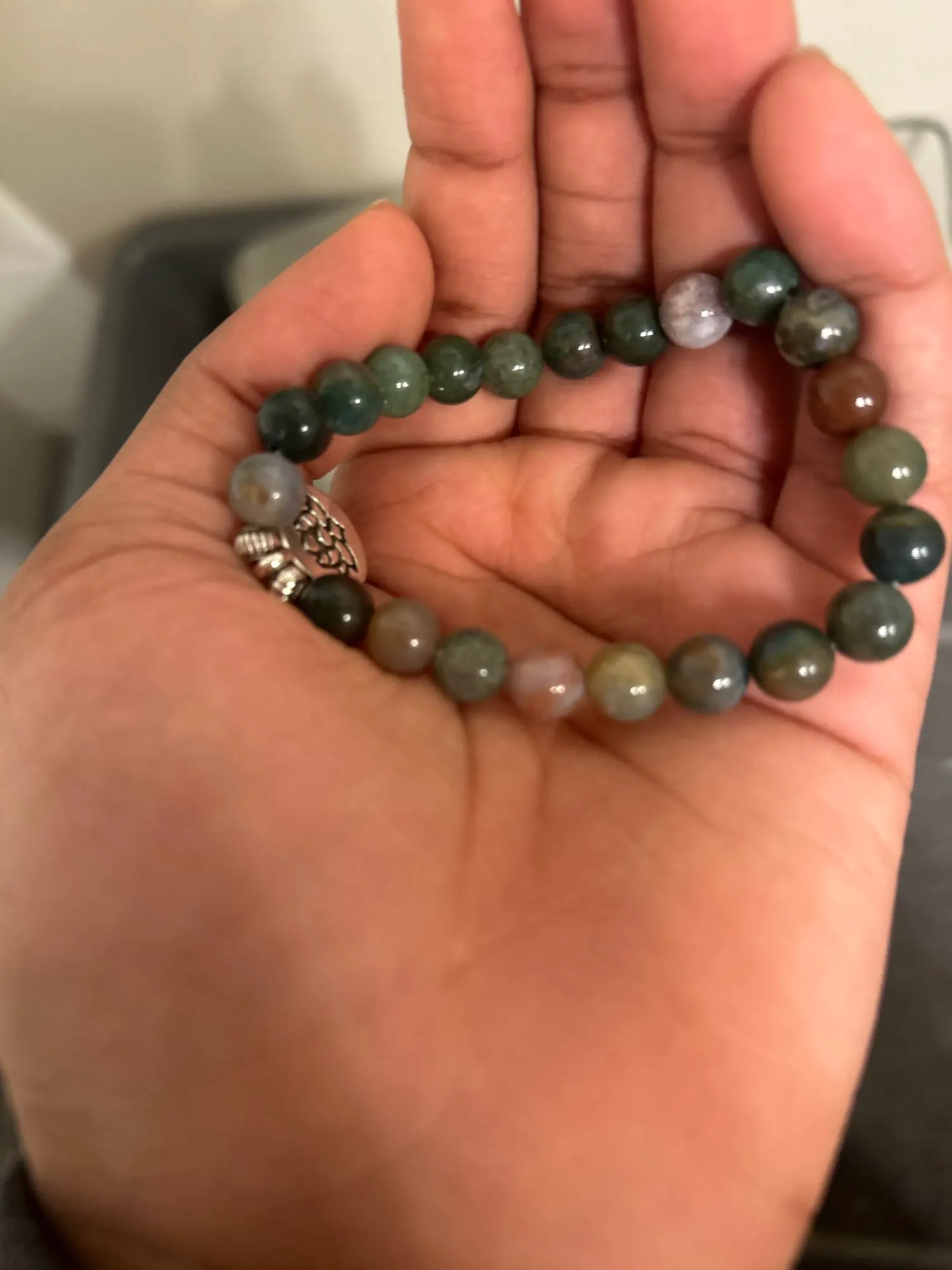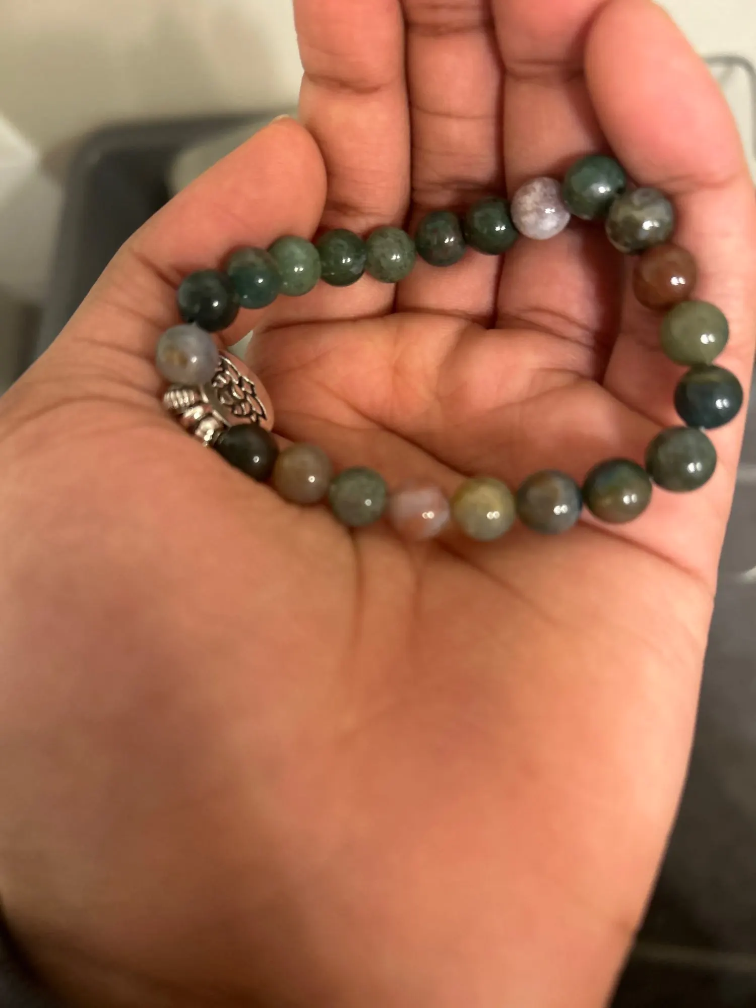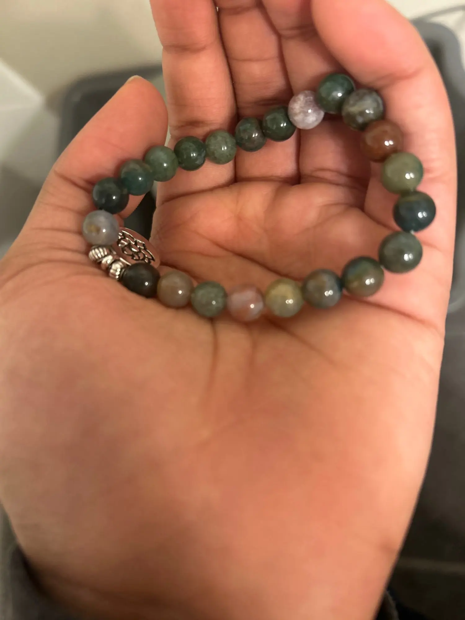 While it’s okay for occasional splashes, we recommend taking it off before swimming or showering to keep the stones and the elastic cord in the best condition.