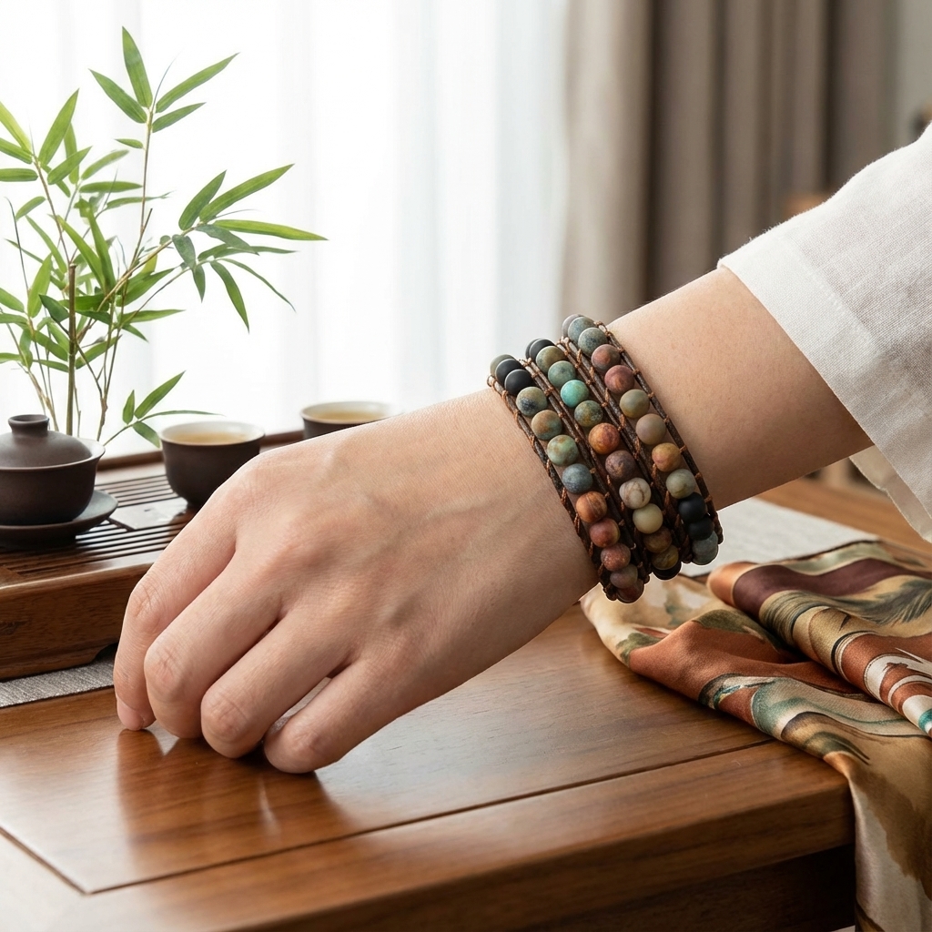 The variety of colors in the agate stones is beautiful, and the leather wrap feels very durable. It’s comfortable enough for all-day wear and has a really calming presence.