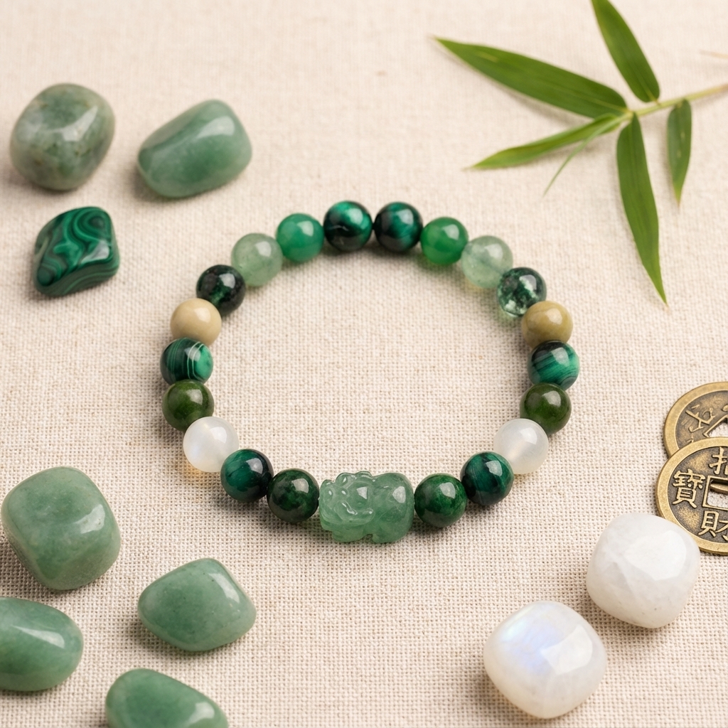 Wear the bracelet on your left hand, the traditional “receiving” side in Feng Shui, to welcome wealth energy into your life. Cleanse your crystals regularly under moonlight and avoid contact with harsh chemicals to maintain their spiritual vibrancy.
