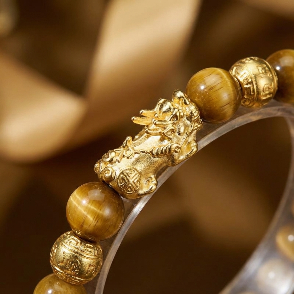 To maximize the spiritual benefits of your Gold Tiger Eye Pixiu Bracelet, it is traditionally recommended to wear it on your left hand. In Feng Shui, the left side of the body is the “receiving” side, allowing you to absorb the wealth-attracting energy of the Pixiu. Ensure the head of the Pixiu is facing outward (toward your pinky finger), symbolizing the creature going out into the world to find prosperity and bring it back to you. Avoid wearing the bracelet while bathing or sleeping to maintain the integrity of the natural stones and the energetic purity of the amulet.
