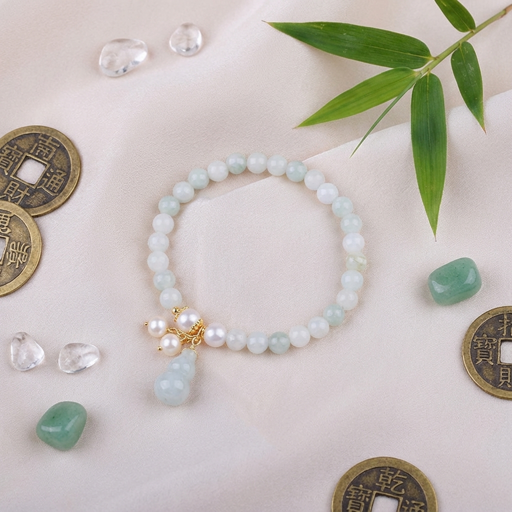 In traditional Chinese culture, the Wu Lou (Holy Gourd) is a sacred symbol used to absorb negative energy and promote wellness. Combined with light green jade, a stone revered for its healing properties, this bracelet serves as a potent shield against the Illness Star. By wearing this amulet, you invite a flow of positive chi that supports both physical and spiritual well-being, effectively countering malignant energies that may cause sickness.