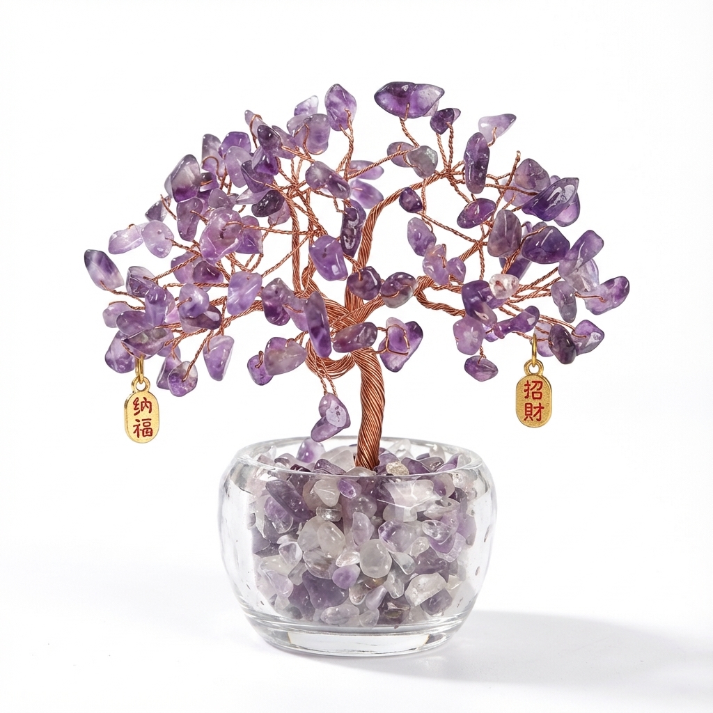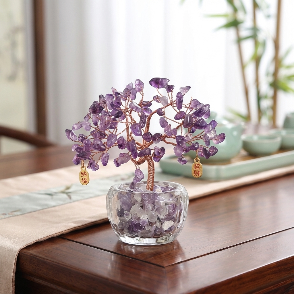 In the practice of Feng Shui, the Amethyst tree is revered as a powerful tool for energy purification. Known as the “Stone of Spirit,” Amethyst works to neutralize negative vibrations and transmute them into serene, positive energy. By placing this tree in your living space, you invite a continuous flow of balance and prosperity, clearing the path for mental clarity and emotional stability.