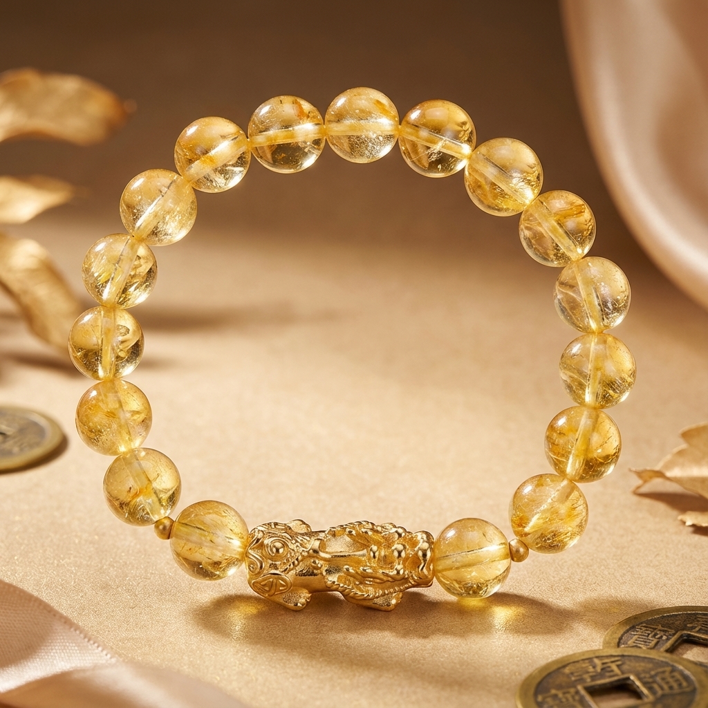In traditional Feng Shui practice, the synergy between Citrine and the Pixiu is unparalleled. Citrine, famously known as the “Merchant’s Stone,” works to amplify your success and positive chi, while the celestial Pixiu acts as a guardian, relentlessly hunting for riches and ensuring that your wealth remains protected and never flows away.