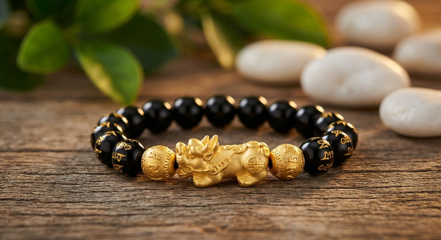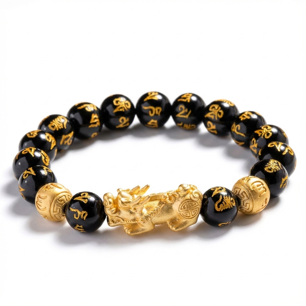 This bracelet combines the legendary “fortune beast” Pixiu with Black Obsidian, the stone of the Water element. In Feng Shui, water represents the fluid movement of money and career success, while Pixiu is renowned for capturing and guarding one’s fortune. Together, they create a synergistic field that attracts luck while shielding the wearer from negativity.