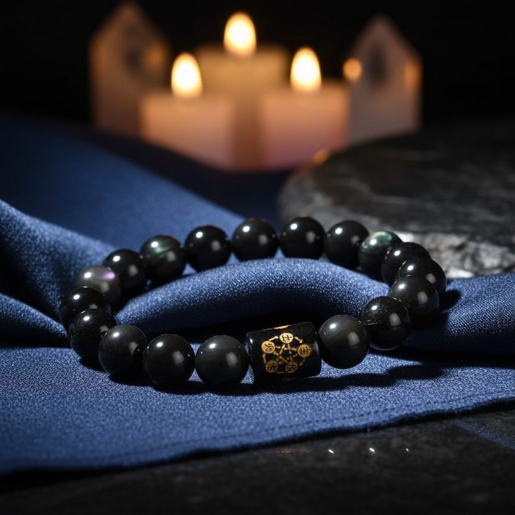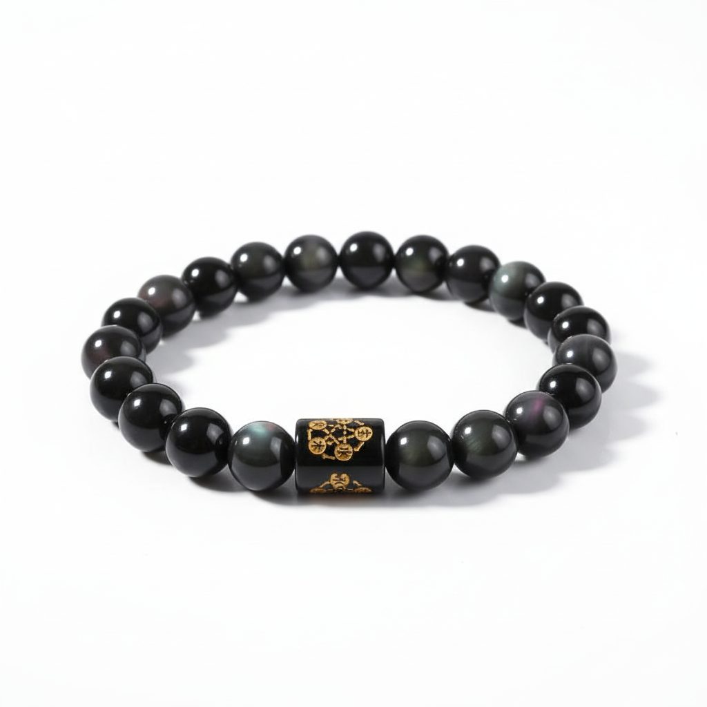 In traditional Feng Shui, Obsidian is a stone of the Water element, which governs the flow of wealth, career success, and deep wisdom. Its deep black hue acts as a protective vacuum, absorbing “Sha Chi” (negative energy) and shielding the wearer from the “Evil Eye” or psychic attacks. The unique “rainbow eyes” hidden within the stone represent the light that emerges from darkness, symbolizing a breakthrough in luck and prosperity. By wearing this stone, you align yourself with the energy of truth and protection, ensuring that your path to success remains clear of energetic obstacles.