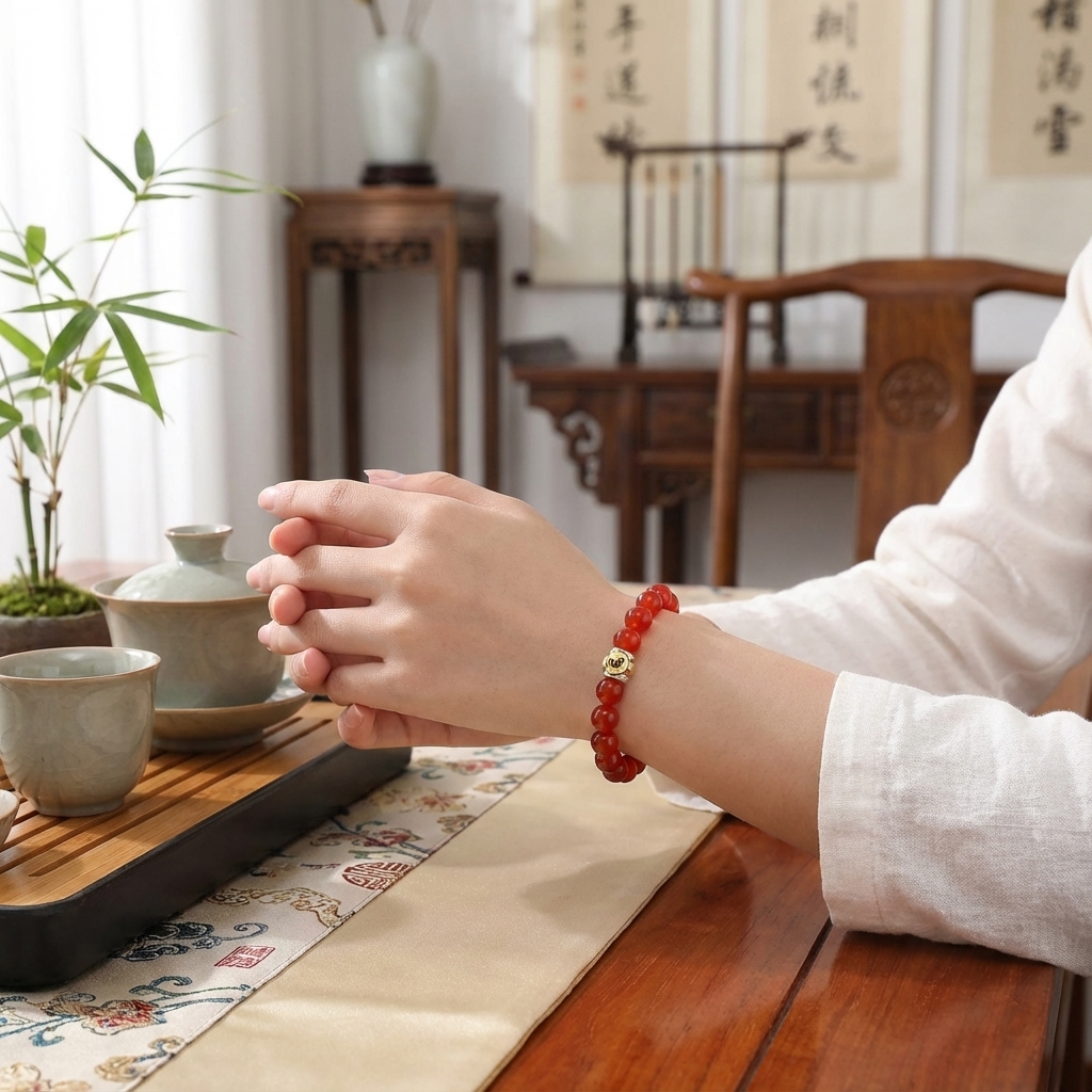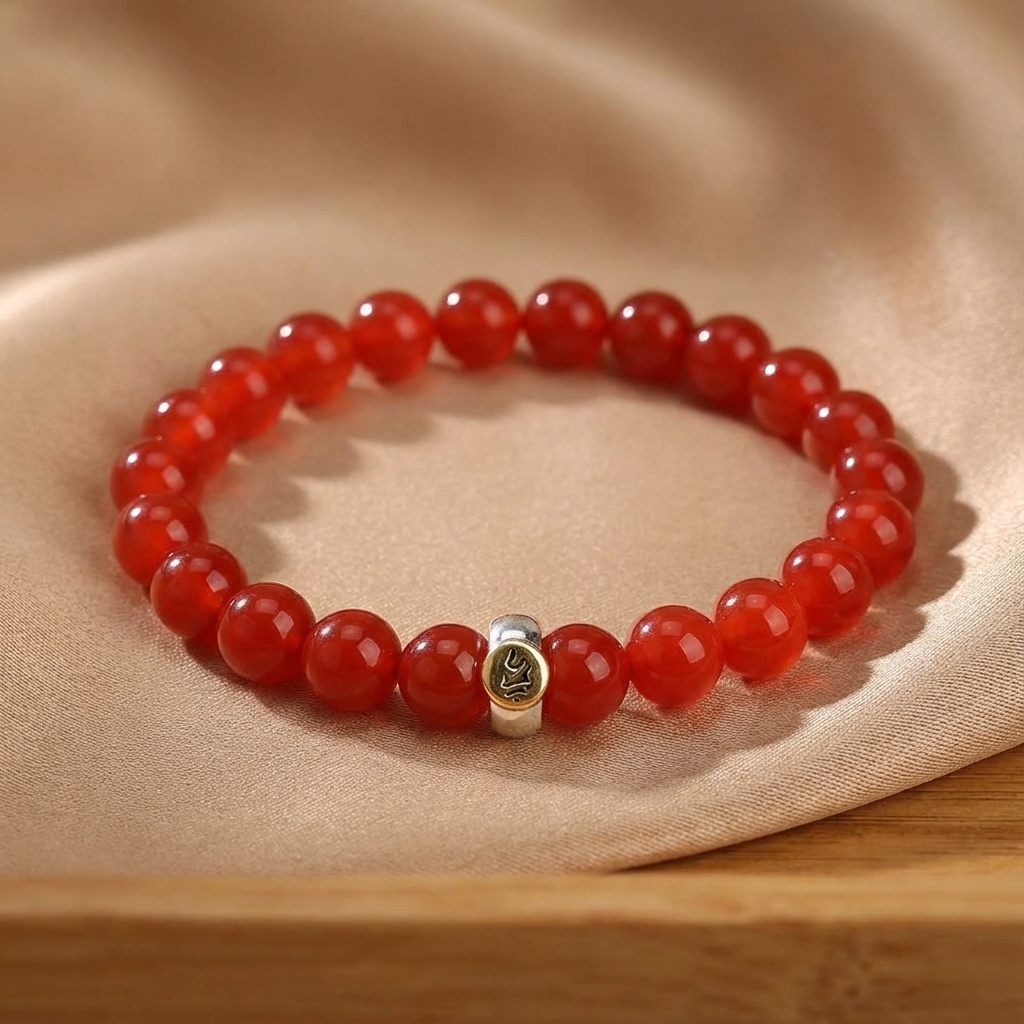 I’m totally obsessed with how vibrant the red agate looks, and knowing it’s customized to my personal Buddhist guardian makes it feel so special! The sterling silver detail is gorgeous and I can’t stop staring at it on my wrist—fingers crossed for all that extra luck and abundance!