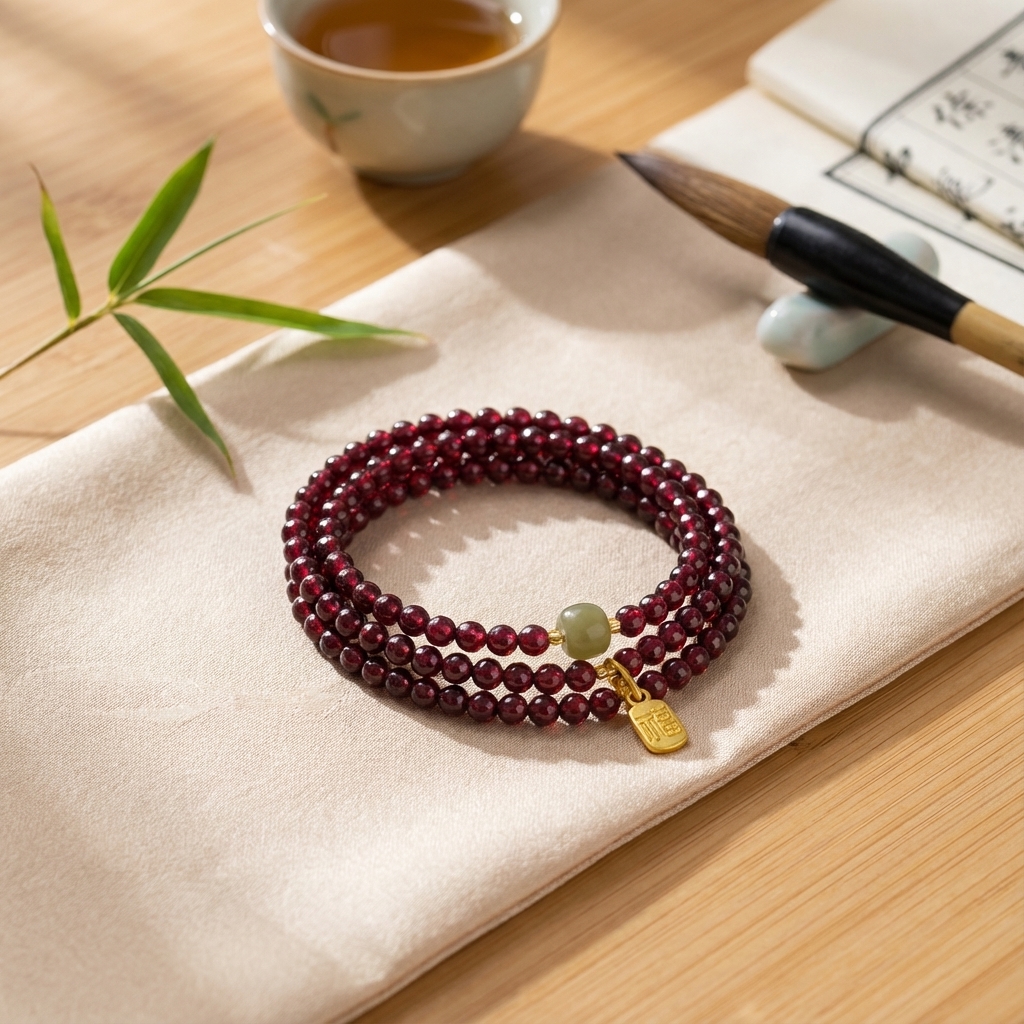 - Natural Gemstones: Crafted with genuine dark red garnet beads and authentic Hetian Jade accents.