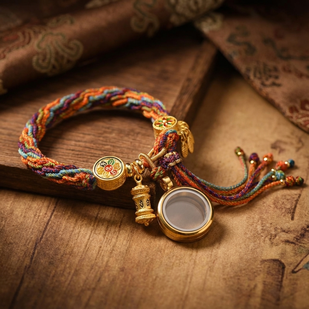 - Sacred Symbols: Features a Tibetan Prayer Wheel and the holy Om Mani Padme Hum mantra for divine blessings.