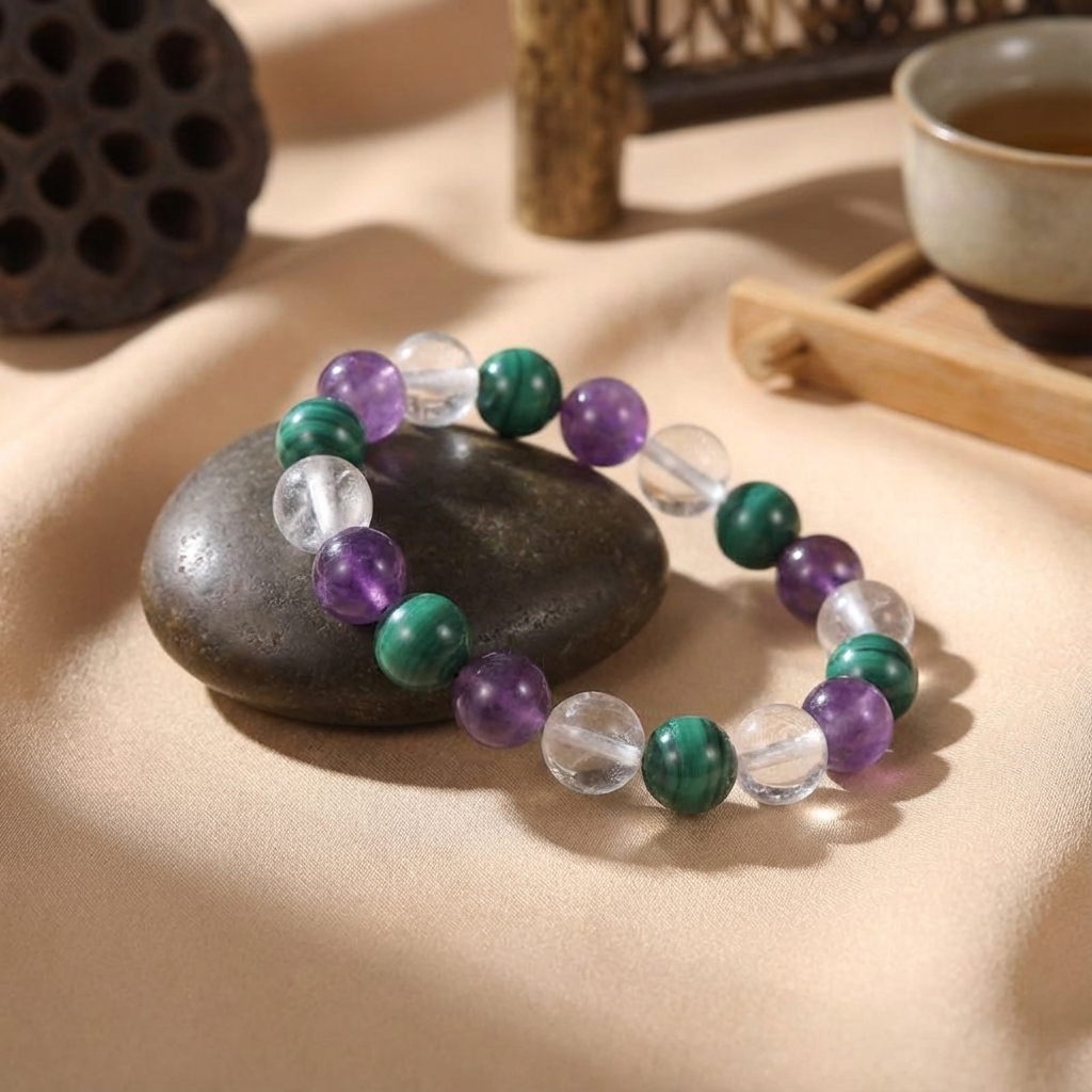 In the practice of Feng Shui, maintaining a balanced flow of Chi is essential for attracting luck and prosperity. This bracelet serves as a powerful energetic tool; Amethyst clears mental clutter to allow for focused intention, Malachite provides protection during transformation, and Clear Quartz acts as a master amplifier for your financial and spiritual goals.